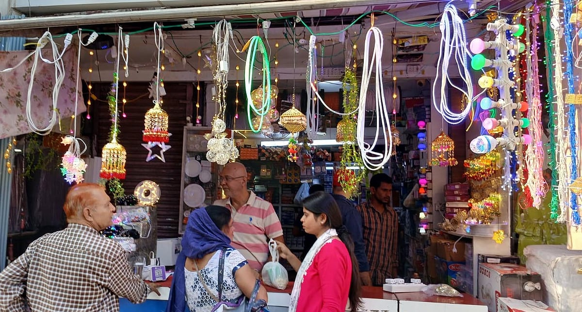 “Earlier, finished products used to be imported from China. Then they started importing raw material and making the final product here,” explained Rajeev, a shopkeeper selling golden and earthen-coloured plastic diyas fitted with small bulbs.