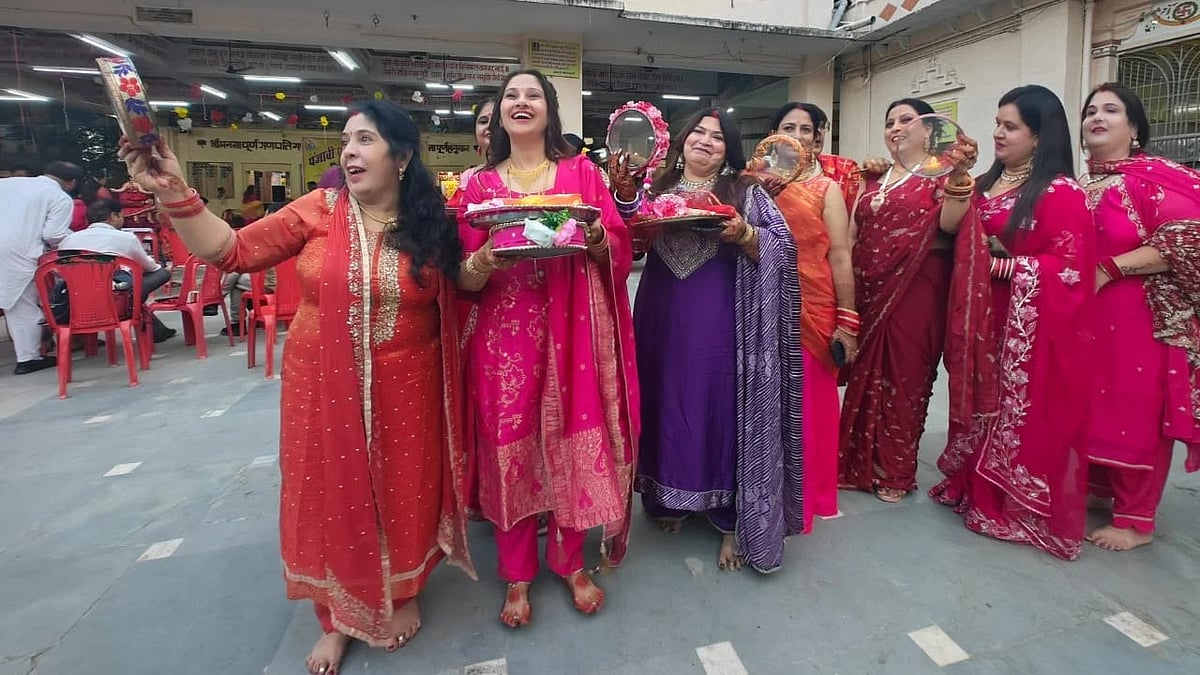 Gwalior (Madhya Pradesh): The festival of Karwa Chauth - symbolising love, faith, and devotion between husband and wife - was celebrated with great enthusiasm in Gwalior on Friday.