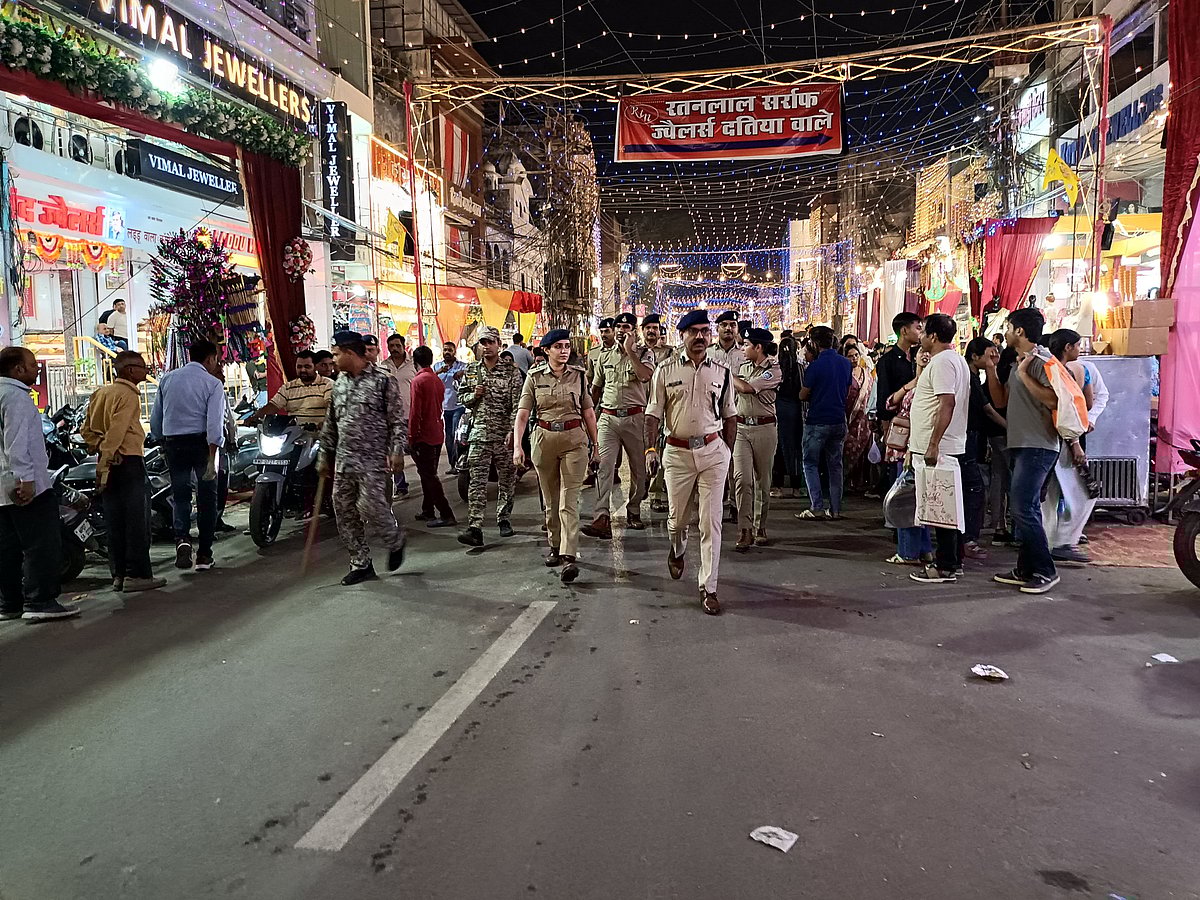 To ensure safety during the festive rush, over 1,500 police personnel and officers were deployed across major markets, including Sarafa Bazaar at Maharaj Bada, Murar Sadar Bazaar and Kilagate.