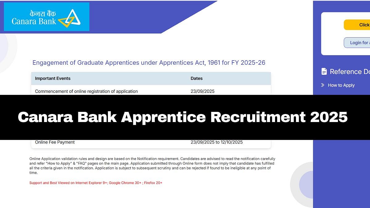 Canara Bank Apprentice Recruitment 2025: Registration Process Ends Soon; Check Eligibility Criteria Here