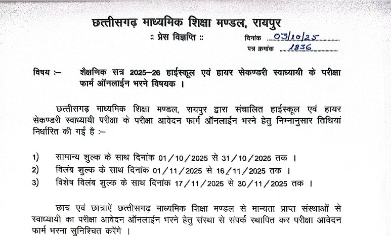 All applicants have been directed by the CGBSE to verify the accuracy of their academic and personal information prior to submission. Any inconsistency in the application form may cause problems when the admit card is issued or the results are announced.