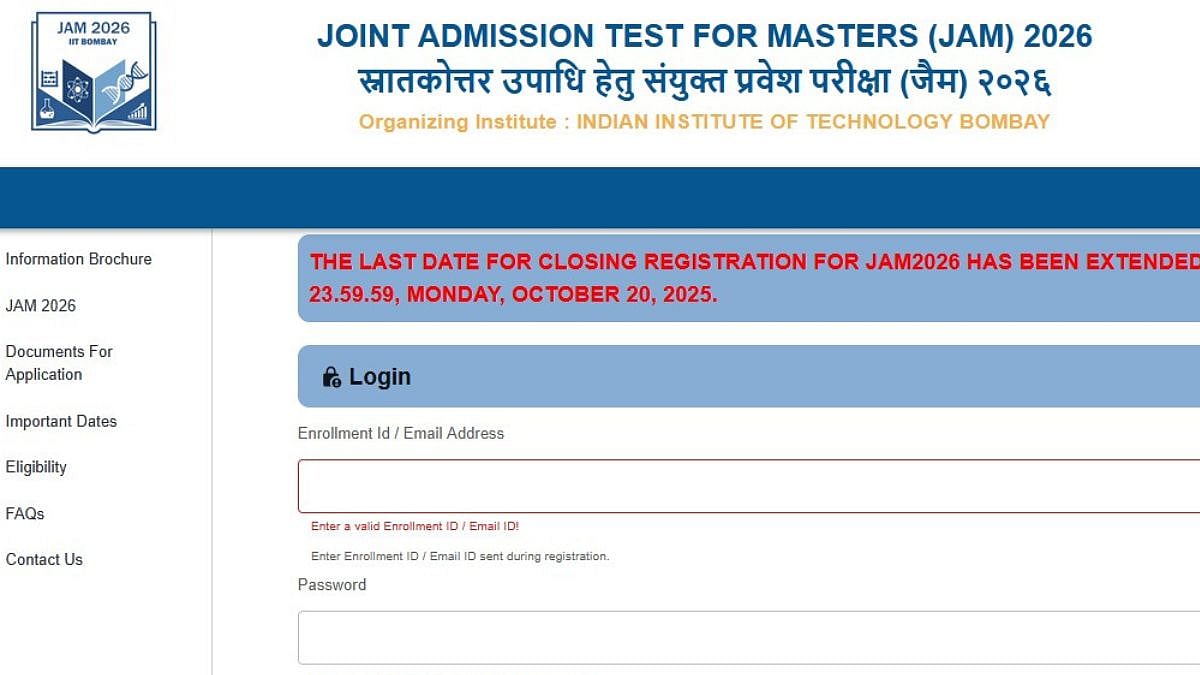 JAM 2026 Registration: The Indian Institute of Technology (IIT) Bombay has extended the deadline for registration for the Joint Admission Test for Masters (JAM) 2026 to October 20, 2025, providing applicants with more time to apply for one of the most sought-after postgraduate entrance examinations in India. The previous deadline was October 12, 2025. The applicants can now register themselves by visiting the official website at joaps.iitb.ac.in by 11:59 PM (IST).