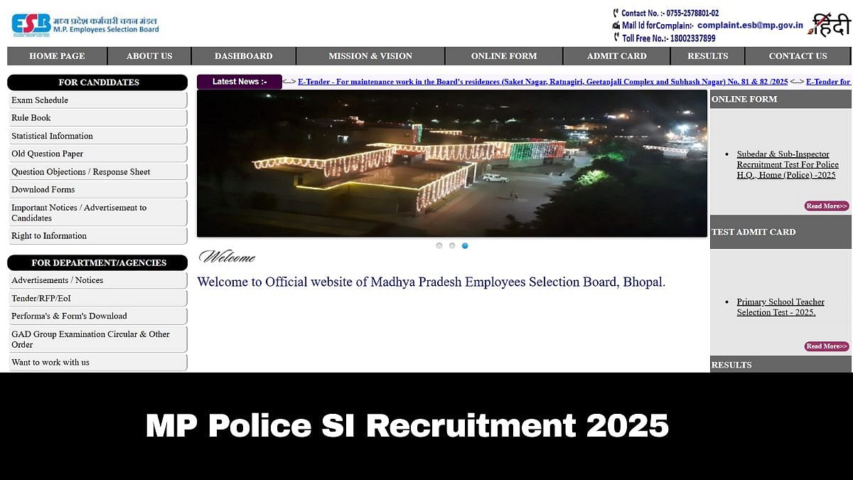 MP Police SI Recruitment 2025: The Madhya Pradesh Employees Selection Board, MPESB, plans to begin the application procedure for the recruitment of Sub Inspectors in Madhya Pradesh Police on October 27, 2025. Qualified applicants can submit their applications online at the MPESB's official website, esb.mp.gov.in.