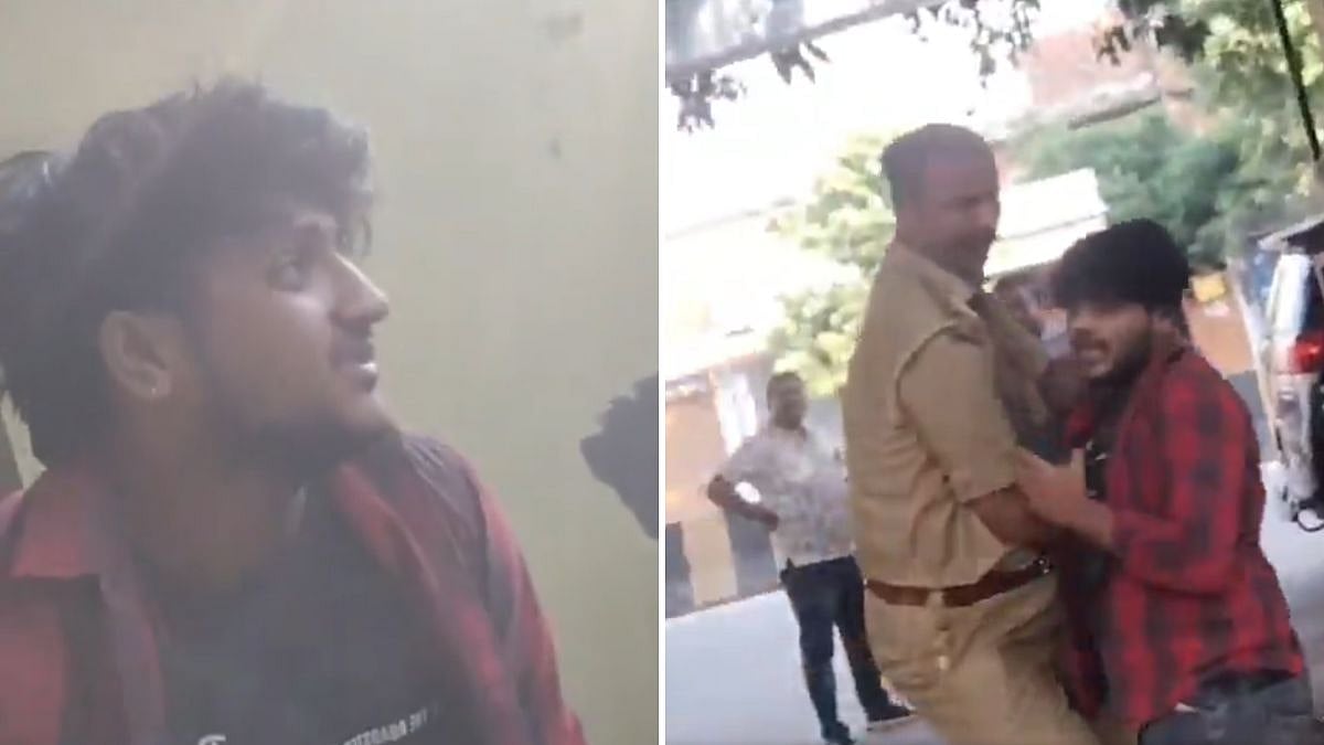 Sub-Inspector (SI) Amit Vikram Tripathi was seen slapping and kicking the student inside the police outpost as the youth pleaded for mercy, prompting senior officials to take action.