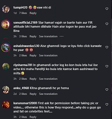"Why does Hema Malini accept public invitations when she has so many issues with clicking pictures with fans," read another comment.