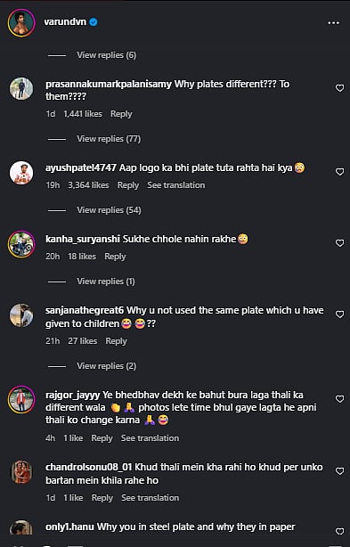 However, Varun soon became a target of trolling. Netizens pointed out that while the children were served food in disposable plates, the actor himself was eating from a steel plate. Adding to it, many noticed that Varun’s steel plate appeared slightly broken on one side. "Such a big actor, but eating on a broken plate," one user wrote.