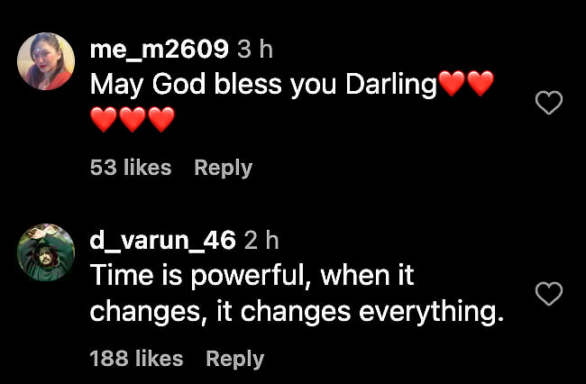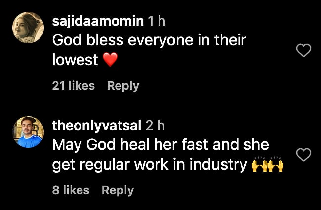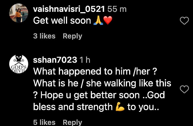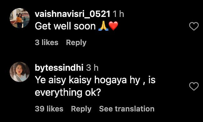 A user commented, "Lots of strength and success to you." Another wrote, "Omg what happened to her ?? I hope she is fine and healthy." A third user commented, "Feeling so bad. May god gives u strength."
