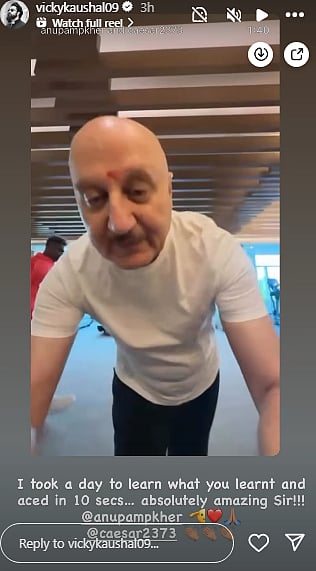 This caught Vicky's attention, who could not stop praising Anupam. Re-sharing the video on his Instagram story, Kaushal wrote, "I took a day to learn what you learnt and aced in 10 secs…absolutely amazing sir!!! @anupamkher," followed by red heart emojis.