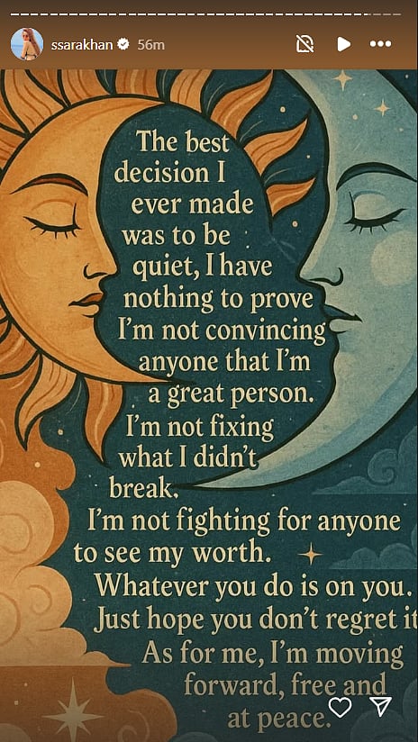 Sara also shared a cryptic note on her Instagram story which read, "The best decision I ever made was to be quiet, I have nothing to prove I'm not convincing anyone that I'm a great person. I'm not fixing what I didn't break. I'm not fighting for anyone to see my worth. Whatever you do is on you. Just hope you don't regret it As for me, I'm moving forward, free and at peace."