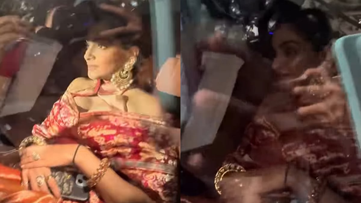 Sonam made a brief appearance in paparazzi videos, giving fans just a fleeting glimpse of her. Even in that short moment, she looked stunning in a red, orange and yellow traditional outfit.