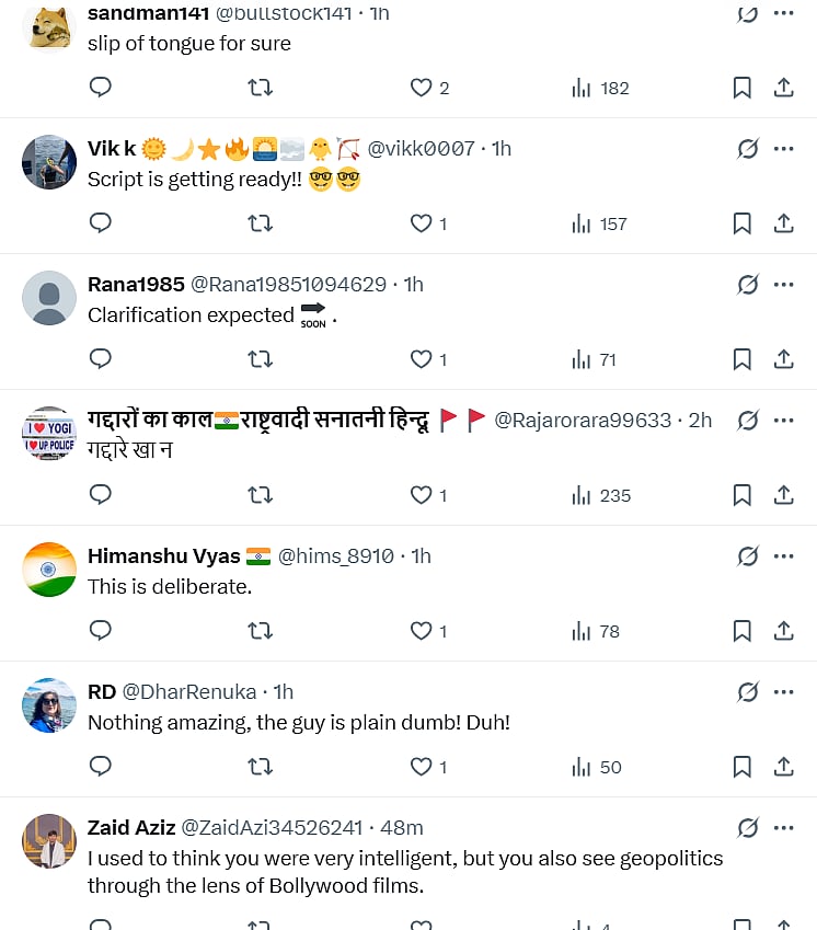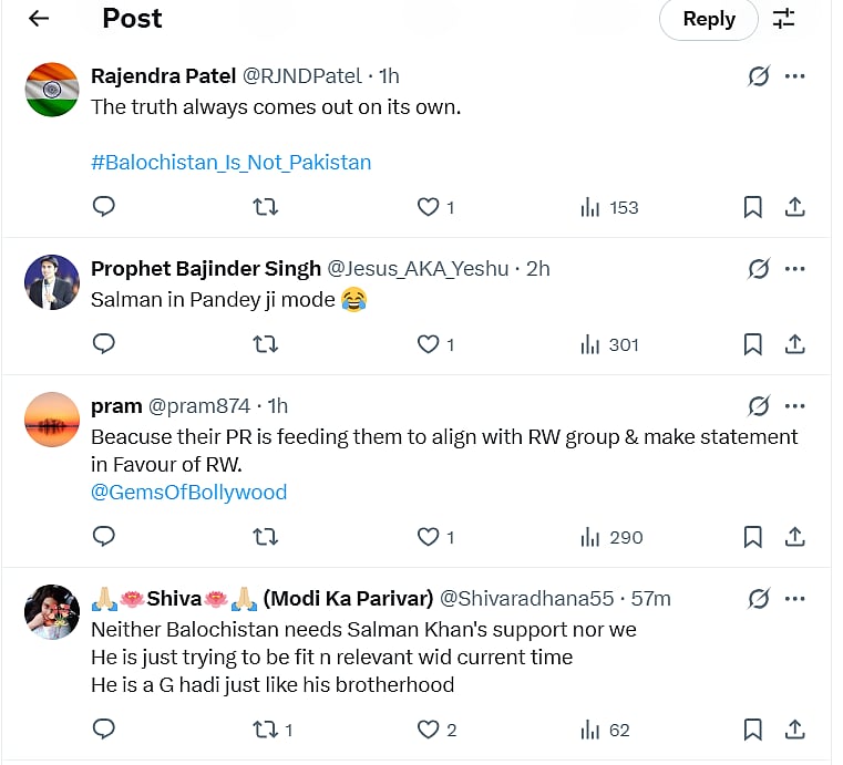 Another commented, "Maybe a new movie in the making “Bajrangi Bhaijaan 2: Mission Balochistan”? We really shouldn’t think that much about geopolitical accuracy from Bollywood philosophers."