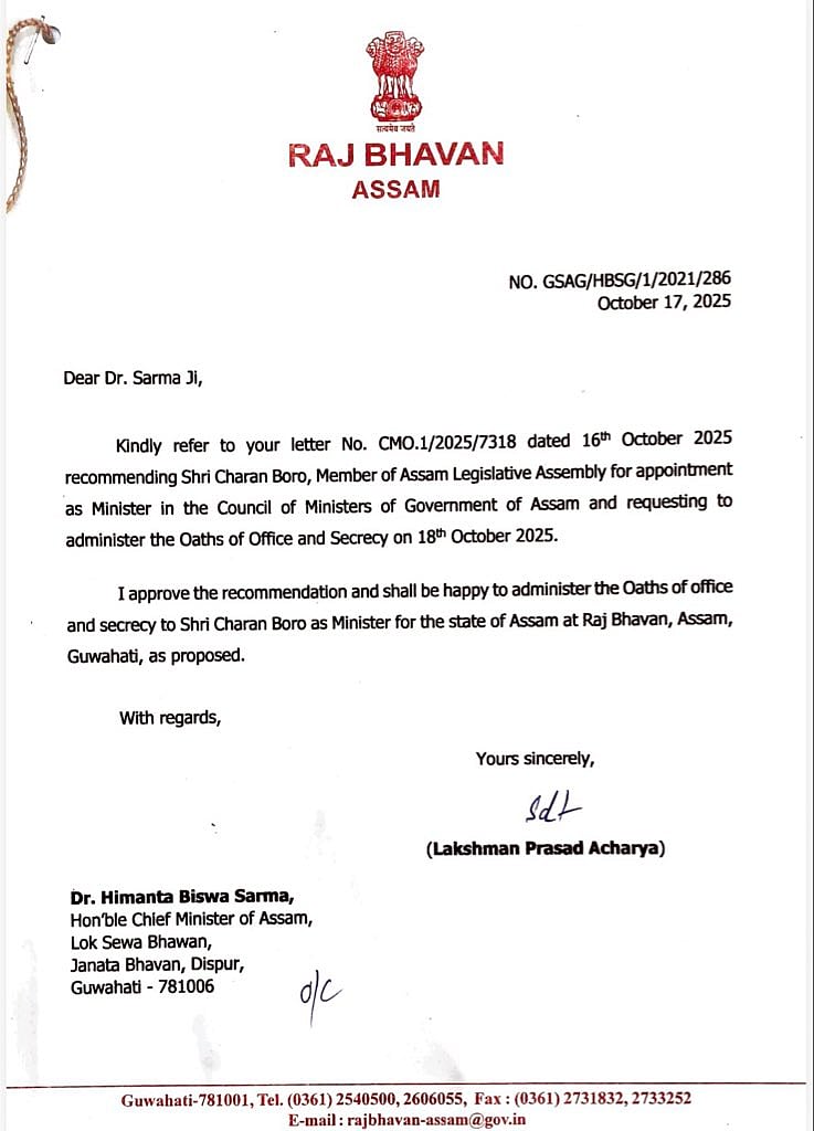 The Bodoland People's Front (BPF) has officially rejoined the National Democratic Alliance (NDA), securing a ministerial berth in the Himanta Biswa Sarma-led Assam government. MLA Charan Boro of Mazbat constituency is set to be sworn in as the Transport Minister, marking the BPF’s formal entry into the ruling coalition.