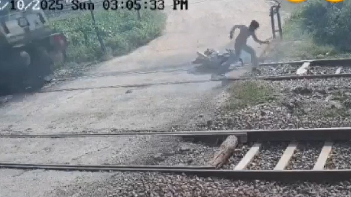 The youth was crossing a railway track on his motorcycle when he lost control and the bike toppled onto the tracks. Although he initially escaped unharmed, he returned in an attempt to retrieve the motorcycle.
