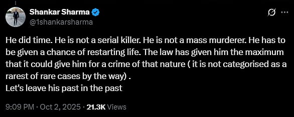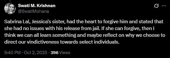 Others argued he had already served his sentence. “He did time. He is not a serial killer. He has to be given a chance of restarting life,” one netizen commented. Another reflected on Sabrina Lal’s forgiving stance, writing, “If she can forgive, then I think we can all learn something."