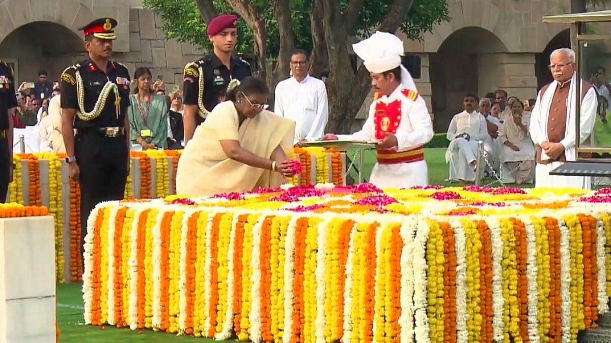 New Delhi: President Droupadi Murmu on Thursday paid tribute to Mahatma Gandhi at Raj Ghat and to former Prime Minister Lal Bahadur Shastri at Vijay Ghat on their birth anniversary.