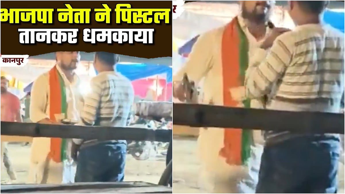 The person reportedly identified in the video is BJYM leader Amitesh Shukla and the incident occurred in Bhaunti village which falls under the Sachendi Police Station area. As per reports, a Ramlila program was organised as part of Dussehra celebrations in the village. Shukla was openly showering money on dancers and when some people objected to his act, he allegedly pulled out a gun and pointed it at a man and threatened to kill him.