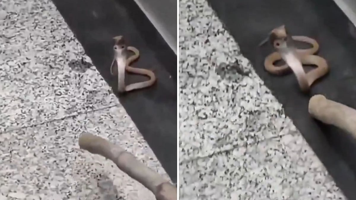 Armed with basic equipment, the team managed to contain the snake using a garbage bin and ensured its safe release in a nearby open area. A video recorded by residents shows the brownish cobra hooding defensively on the elevator floor as rescuers carefully manoeuvred it into the container.