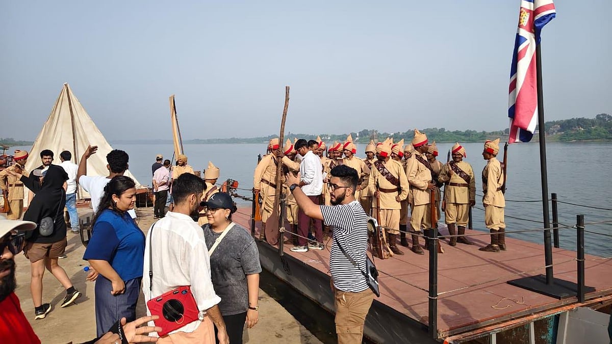 Scenes were shot around the Shalivahan Shiv Temple and the main ghats, depicting boats on the river, flags and soldiers in traditional costumes.