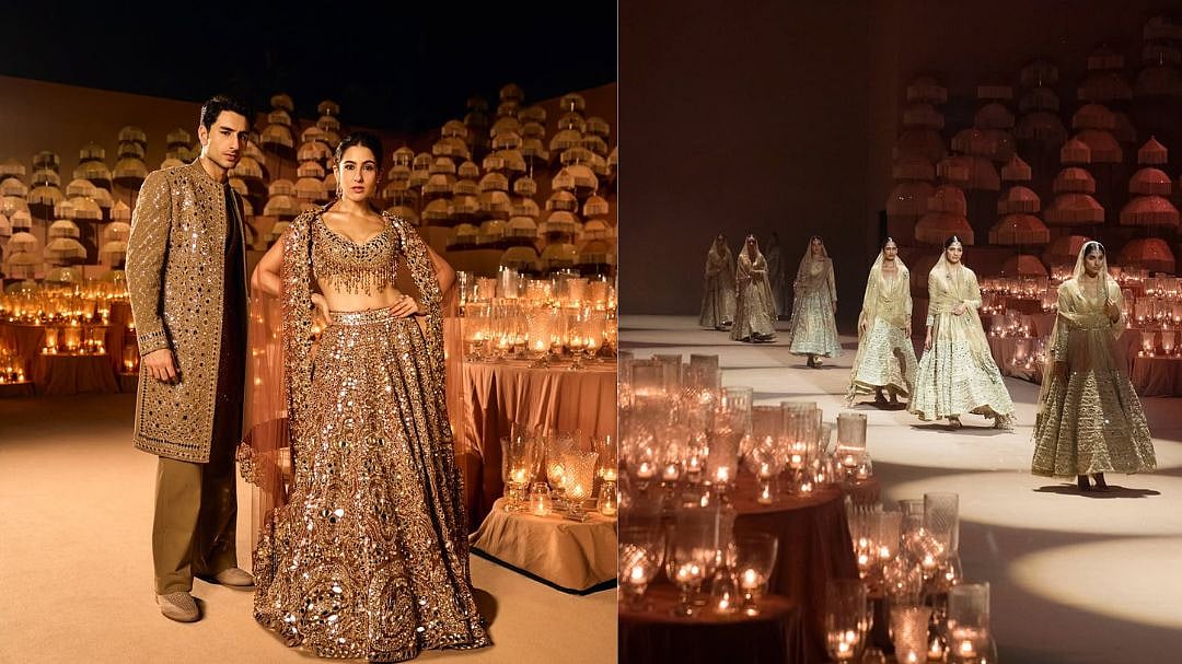 Diwali is still a week away but designer Abhinav Mishra's latest collection is an ode to the festival of lights, and walking the ramp for him were none other than brother-sister duo Ibrahim and Sara Ali Khan.