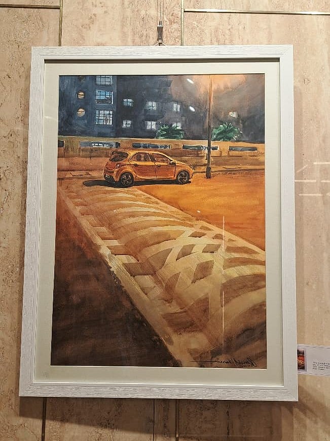 Khairnar’s artistic spark ignited early. "I don’t remember when I started sketching,” he says, “but my parents tell me my first drawing was of my father’s old Ambassador car — on a slate! Cars still find their way into my paintings.” Professionally, Khairnar has spent two decades working as a storyboard artist for ad films and movies, painting in between “for passion and peace.”