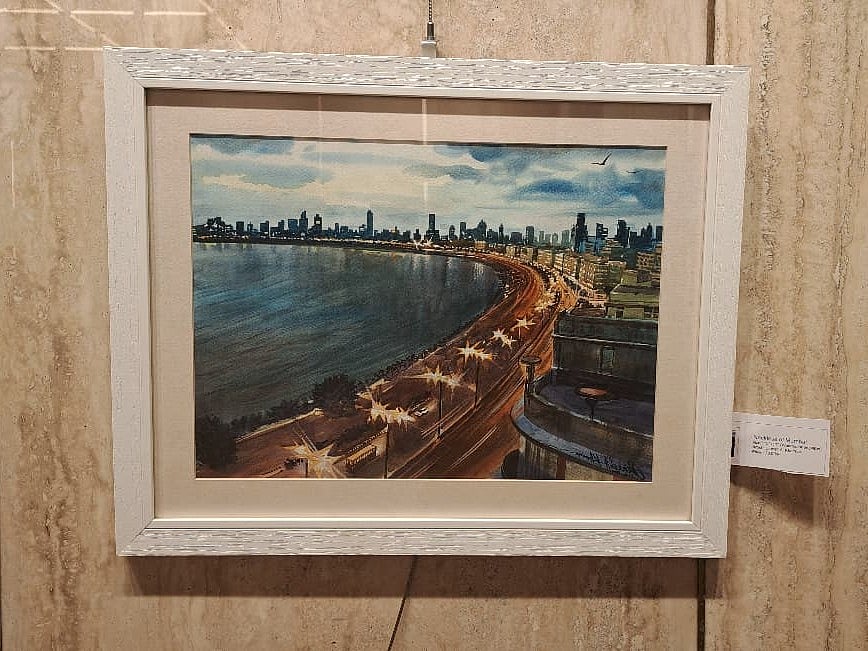 Then there's "Nature's Drama," a panoramic portrayal of Mumbai from above the Western Express Highway. Featuring the skyline of Malad's Westin Tower and Oberoi Mall, it reflects on humanity’s small stories against the grandeur of nature.