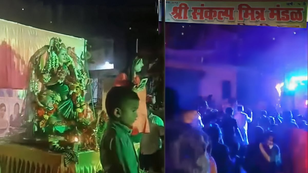 Bhayandar: Navratri and Dussehra celebrations in Bhayandar, organised by Shree Sankalp Mitra Mandal under the leadership of former corporator Vandhana Vikas Patil, have drawn sharp criticism from locals after a viral video on social media showed Bhojpuri and filmi songs being played during the festivities. The footage, widely circulated on social media, shows people dancing to what many described as “loud and vulgar” tracks while carrying the idol of Durga Maa.