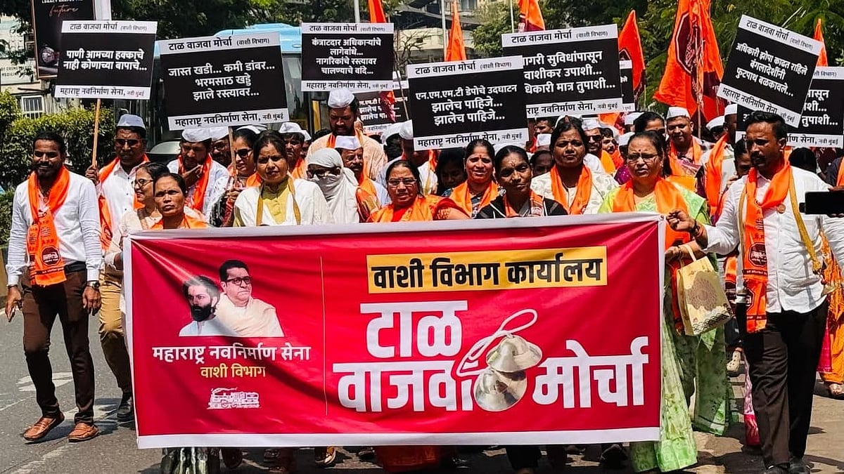 The protest was led by MNS spokesperson and Navi Mumbai City President Gajanan Kale, who criticized the civic administration for ignoring repeated complaints about poor roads, encroachments, garbage accumulation, and neglected gardens in Vashi. A large number of women and local residents joined the agitation, which drew attention to the deteriorating civic conditions.