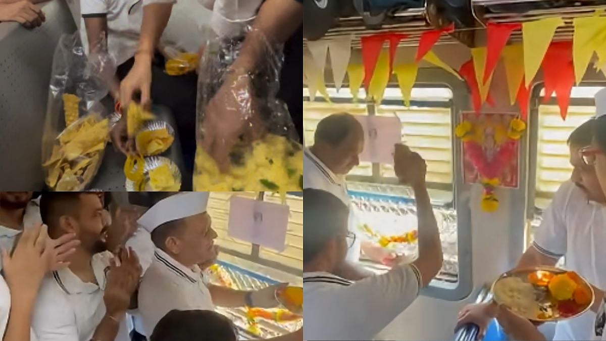 A video of Dussehra celebration inside local train has surfaced on social media. The viral video shows Mumbaikars giving their touch of celebration to their very own local trains by decorating the coaches with colourful ribbons and balloons from the inside, and outside of the trains are decorated with garlands of flowers, posters, images of gods and goddess related to the festival and singing Bhajans in unity related to the festival, making it more special.
