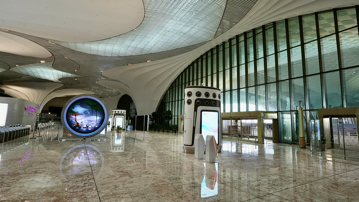 3. Lotus-Inspired Architecture: The terminal building, designed by Zaha Hadid Architects, features a unique and modern lotus-inspired architectural design, with structural columns resembling unfolding petals.