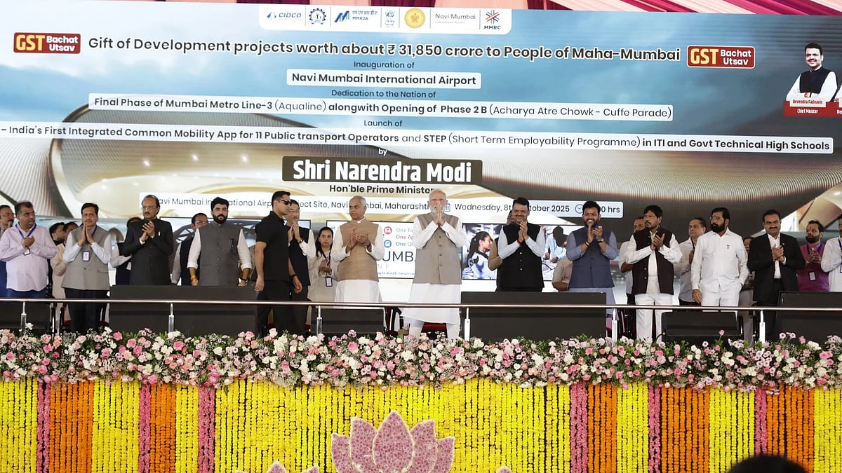 “Mumbai's long wait ends here. NMIA bears the reflection of a Viksit Bharat. It is a lotus blooming on the land of Chhatrapati Shivaji Maharaj,” he said, referring to the airport’s lotus-inspired design.