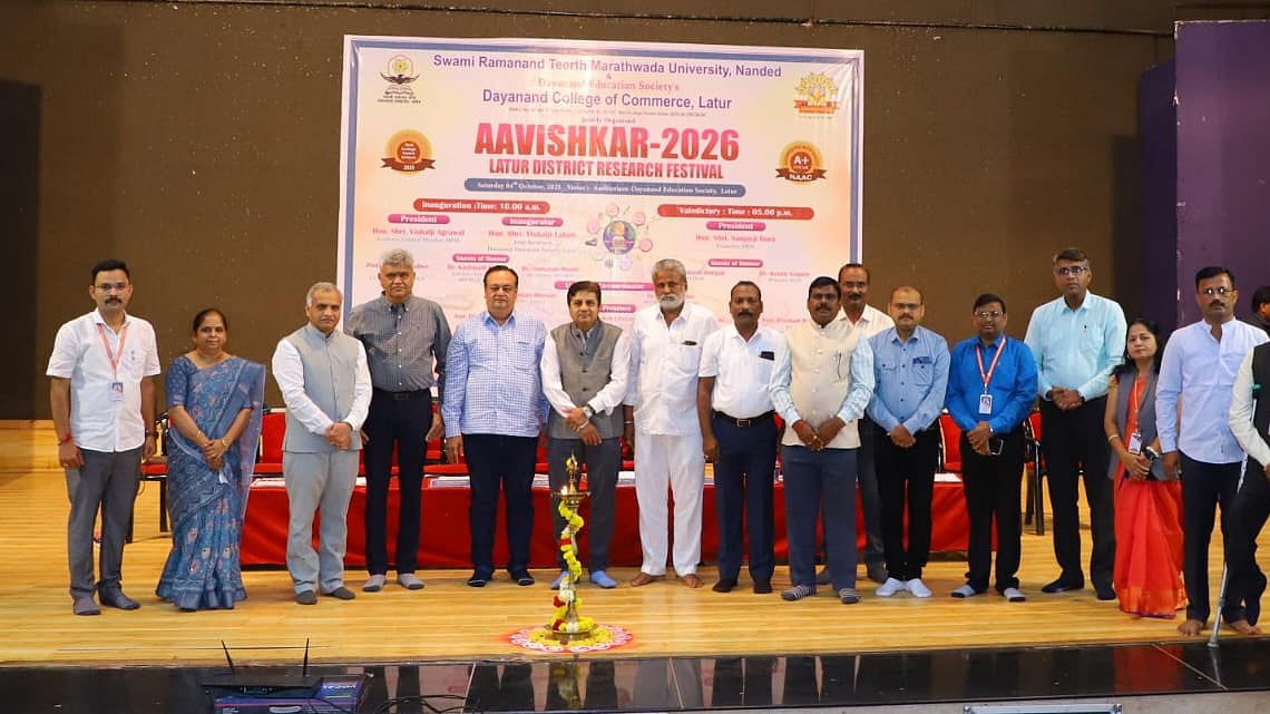 Latur: The district-level round of the ‘Avishkar’ Research Competition, organised under the aegis of Swami Ramanand Teerth Marathwada University, Nanded, was held at Dayanand College of Commerce, Latur, on Saturday. The event witnessed overwhelming participation from 300 students representing various colleges across the district.