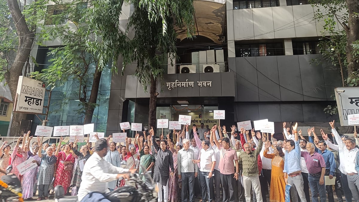 Pune: Around 250-300 people gathered in front of the Pune Maharashtra Housing and Area Development Authority (MHADA) office near Pune railway station, raising concerns over an integrated development plan.