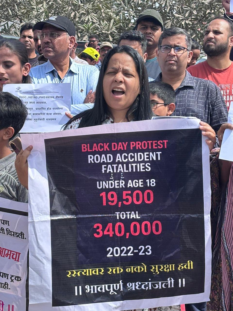 Pimpri-Chinchwad: Residents and IT employees living in Hinjawadi, Maan, and Marunji peacefully protested against the government and its agencies on Saturday morning. The reason behind this protest was poor infrastructure and laxity in the enforcement of rules in the area, causing road accidents. On Friday, a 34-year-old woman died in Pandav Nagar after a mixer truck collided with her. To mourn this and demand a much-needed and long-demanded change, the residents, along with their families, took to the streets and protested.
