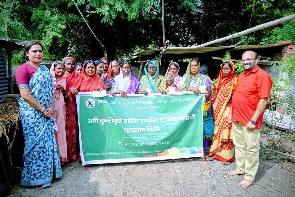 When heavy floods ravaged Solapur, leaving several villages grappling with destroyed crops and damaged homes, help arrived from an unexpected quarter. On October 17, members of Pune’s Yutak LGBTQ Trust travelled over 200 km not just to deliver relief cheques but to forge connections that would challenge preconceptions on both sides.