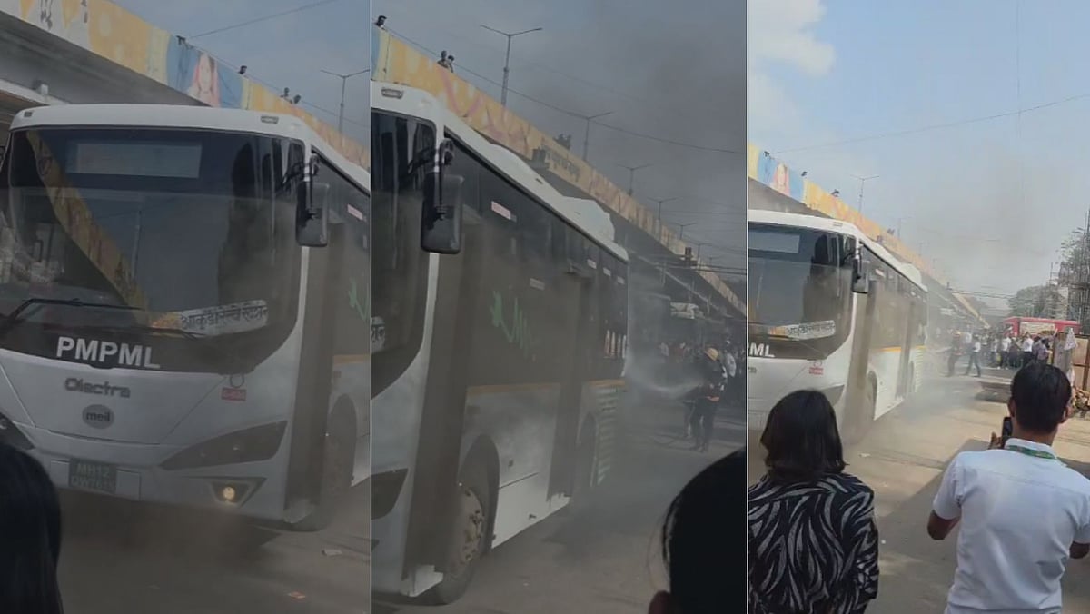 VIDEO: Electric Bus Catches Fire At Nigdi Bus Stop In Pimpri-Chinchwad
