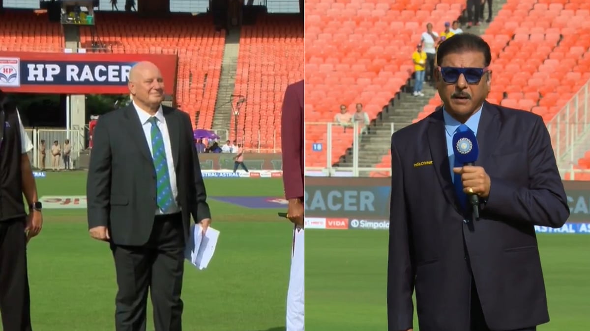 Ravi Shastri set the tone at the toss of the first Test between India and West Indies in Ahmedabad with a cheeky introduction for match referee Andy Pycroft the man at the centre of the recent Pakistan-India handshake controversy during the recent Asia Cup 2025. Shastri announced, "Back in the house, all the way from Dubai, in the hot seat. Andy Pycroft," drawing a sheepish smile from the match referee, clearly aware of the reference to the issue he had been caught in just weeks earlier.