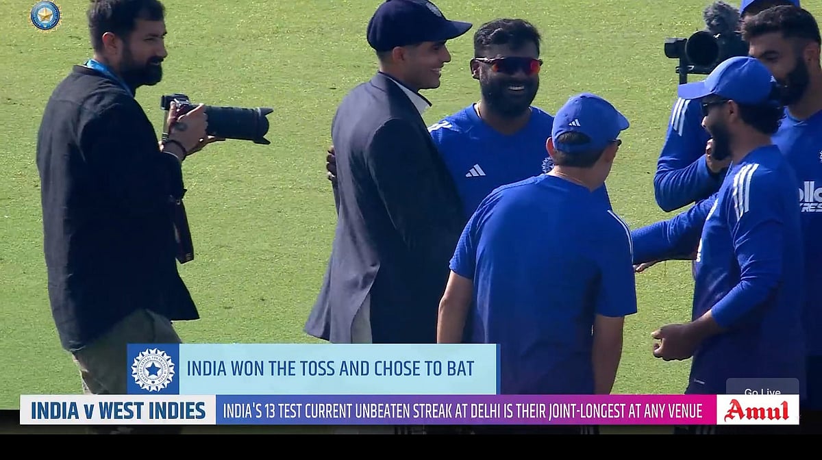 With Shubman Gill winning his first toss as Test captain, his fellow teammates couldn't help but poke fun at him. The coin toss managed to go for the first time in Gill's favour as he stood beside Roston Chase at the Arun Jaitley Stadium in Delhi ahead of the second Test and the teammates cheekily congratulated him.