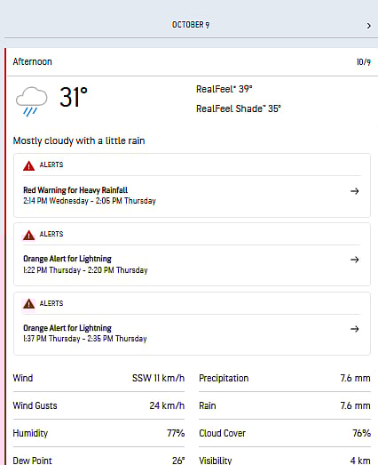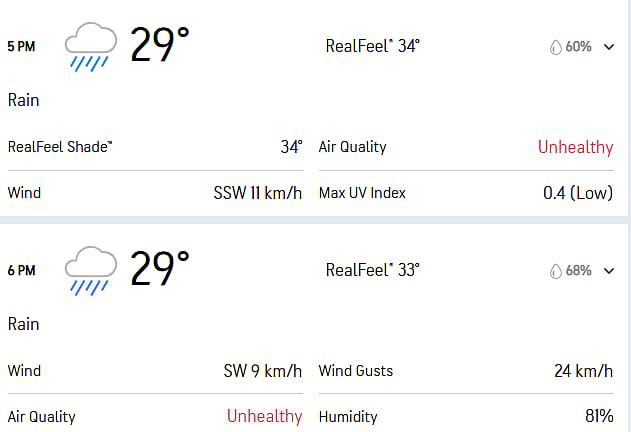 According to AccuWeather, there is a significant chance of rain during match hours, with a 49–58% likelihood between 4 pm and 6 pm. While a complete washout is not certain, rain delays and reduced overs are possible.