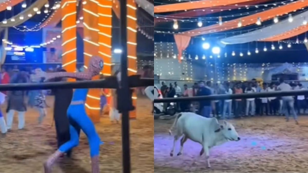 Amid the chaos, a man dressed in a Spider-Man costume is seen stepping forward in an apparent attempt to distract or control the cow. However, the situation takes a comic turn when the cow charges at him, forcing the ‘superhero’ to flee as well, drawing laughter online.