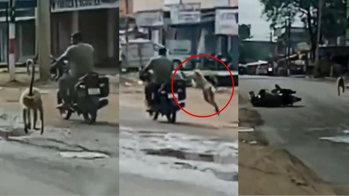 In a shocking incident in Jharkhand's Dumka, a stray langur attacked a commuter on moving back, leading to his collapse from the bike. The entire incident was recorded on camera by onlookers. It is being reported that this langur and several others have been attempting such attacks on passersby and local people for the last few weeks.