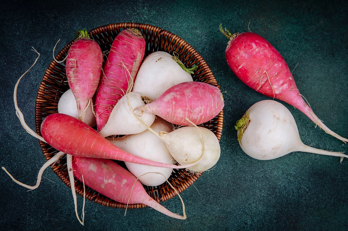 Radish, or mooli, is a winter vegetable with a high-water content making it a great choice for hydration in cold weather. Its pungent and cleansing properties help digestion and boosts metabolism, which can slow down in winter. Add raw grated radish to salads or cook it into soups and parathas.
